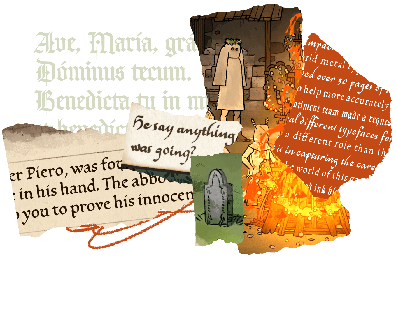 To close, here’s Josh Sawyer, director of the game, with a quote on his experience. “Fonts play an incredibly important role in Pentiment. We have a large cast of characters from a wide range of educational backgrounds in a transitory period between the medieval and the early modern worlds. Capturing all of the nuances and complexities of historical scripts and typefaces while keeping the game's large amount of dialogue legible for a contemporary audience was both vital and daunting. Riley and the team at Lettermatic did a fantastic job working with us over many months to achieve the results you see in the finished game.“