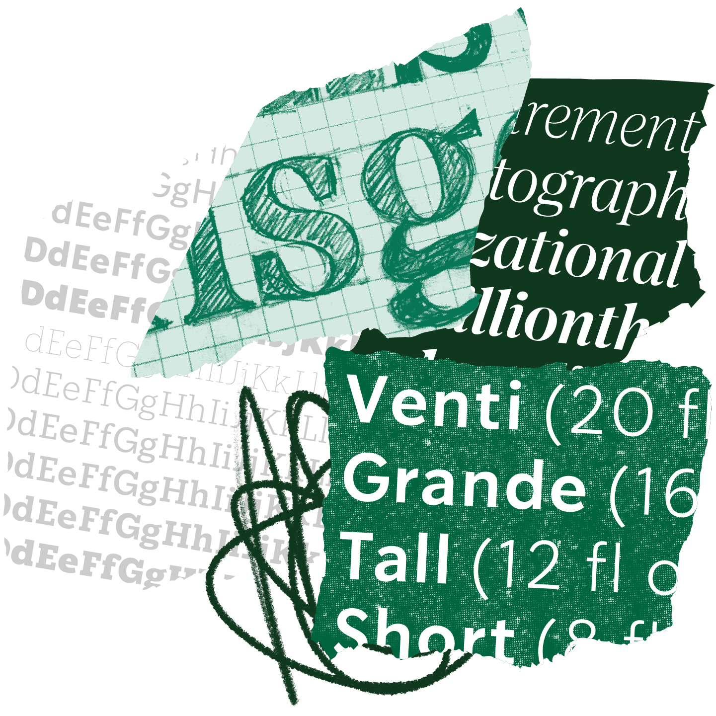 It was truly an honour to be asked to contribute to this project. I am particularly thankful for the contributions of Rob Stanton, Jen Sinconis, Jason Stoff, Trevor Basset, and Dana Deininger, without whom I can't imagine how the process might have gone. The journey was full of excellent lessons, amongst which was the true joy of working with wonderful people, and seeing work go out into the world. Starbucks was a client that put trust into toolmaking, and then leveraged those tools into a wide variety of contexts. As a typeface designer, this is the pinnacle of what we can hope to contribute: good tools for good design. I'll never see the 'be careful this beverage is hot' warning at the bottom of a Starbucks cup quite the same way.